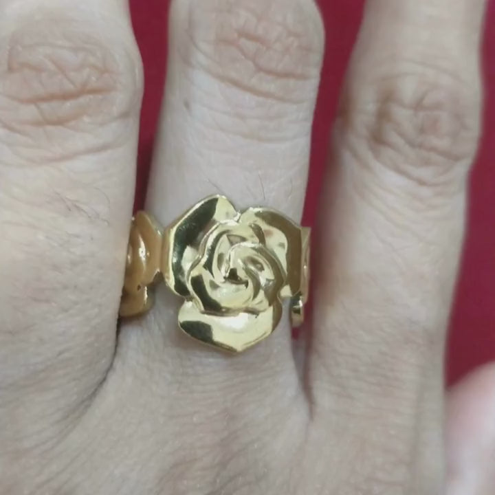 The Golden Rose Ring is a sculptural expression of elegance and resilience. With its bold rose design carved into a wide gold-toned band, this piece speaks of love that blooms even in boldness. Made from 18K gold-plated stainless steel, it’s built to last — just like your story.