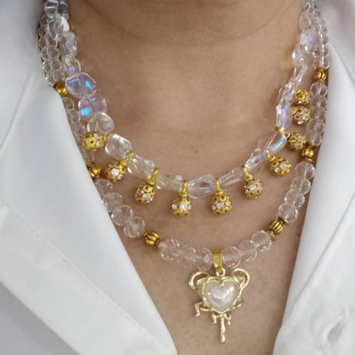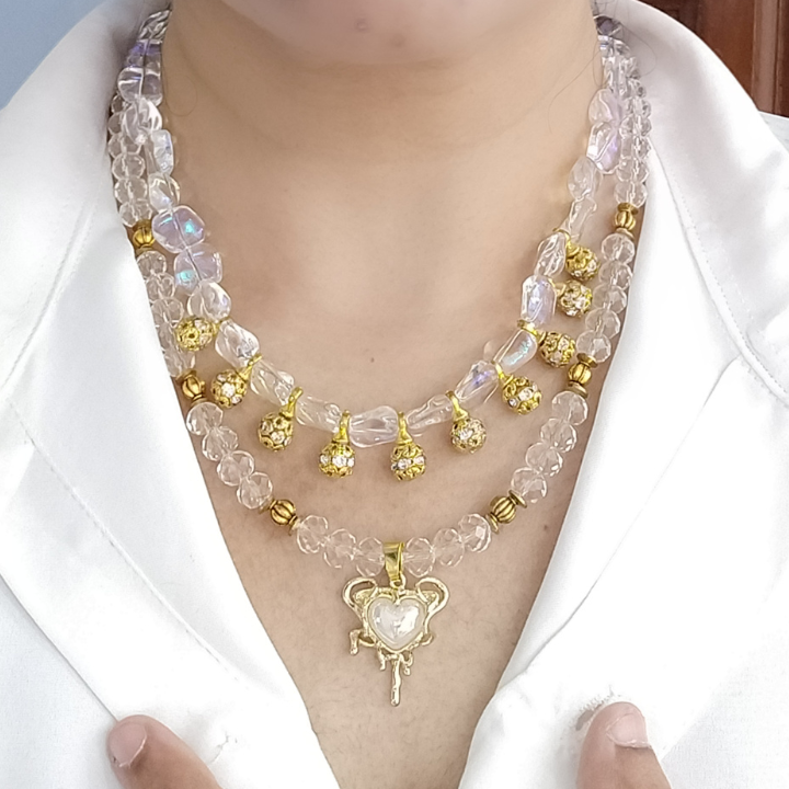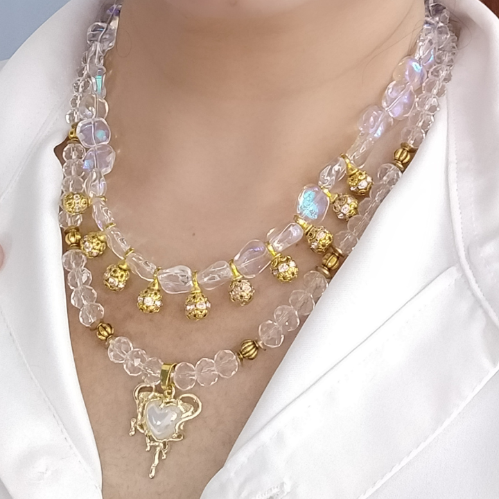 A dreamy dance of textured glass beads and gold-toned charm drops — Crystal Waltz is a playful nod to nostalgia and sparkle. Designed for days when you want your jewelry to do the talking, this piece adds subtle shimmer and movement without going over the top.