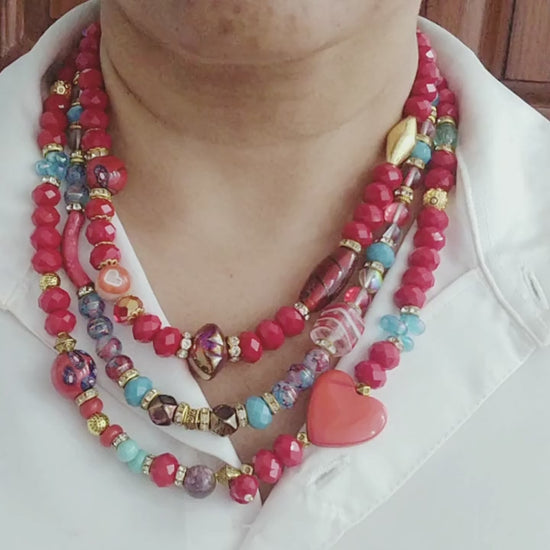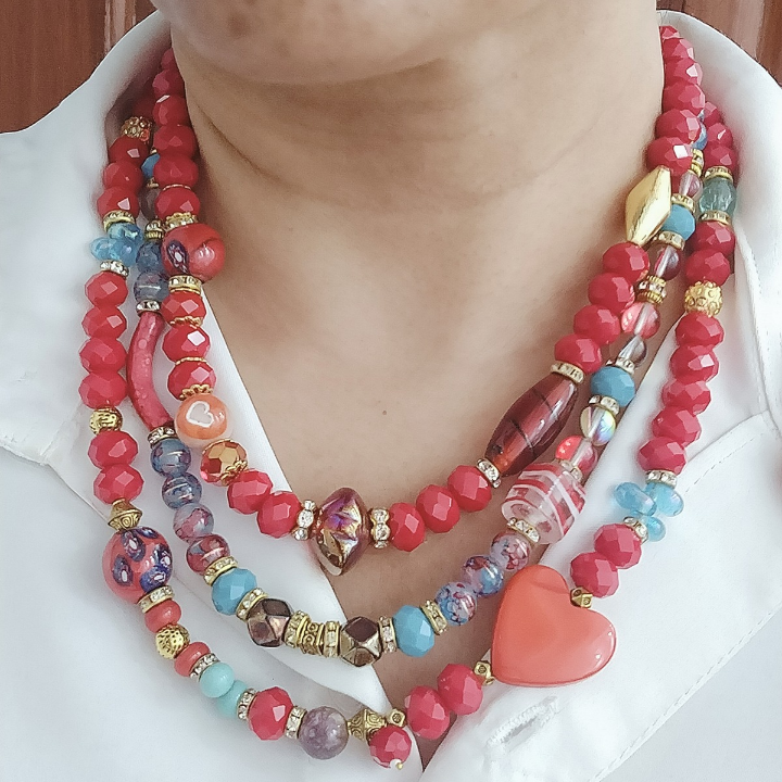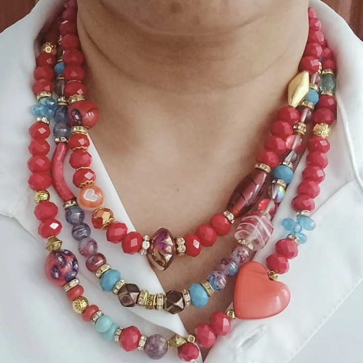 A glossy heart bead, delicatedly nestled, infuses each layer with warmth and personality. Every bead, from vibrant jewel tones to whimsical patterns, is meticulously hand-strung to evoke a spirit that is both spirited and serene. This is more than an accessory; it’s wearable art — an ode to those who cherish color, honor tradition, and aren’t afraid to shine with their own kind of beauty.